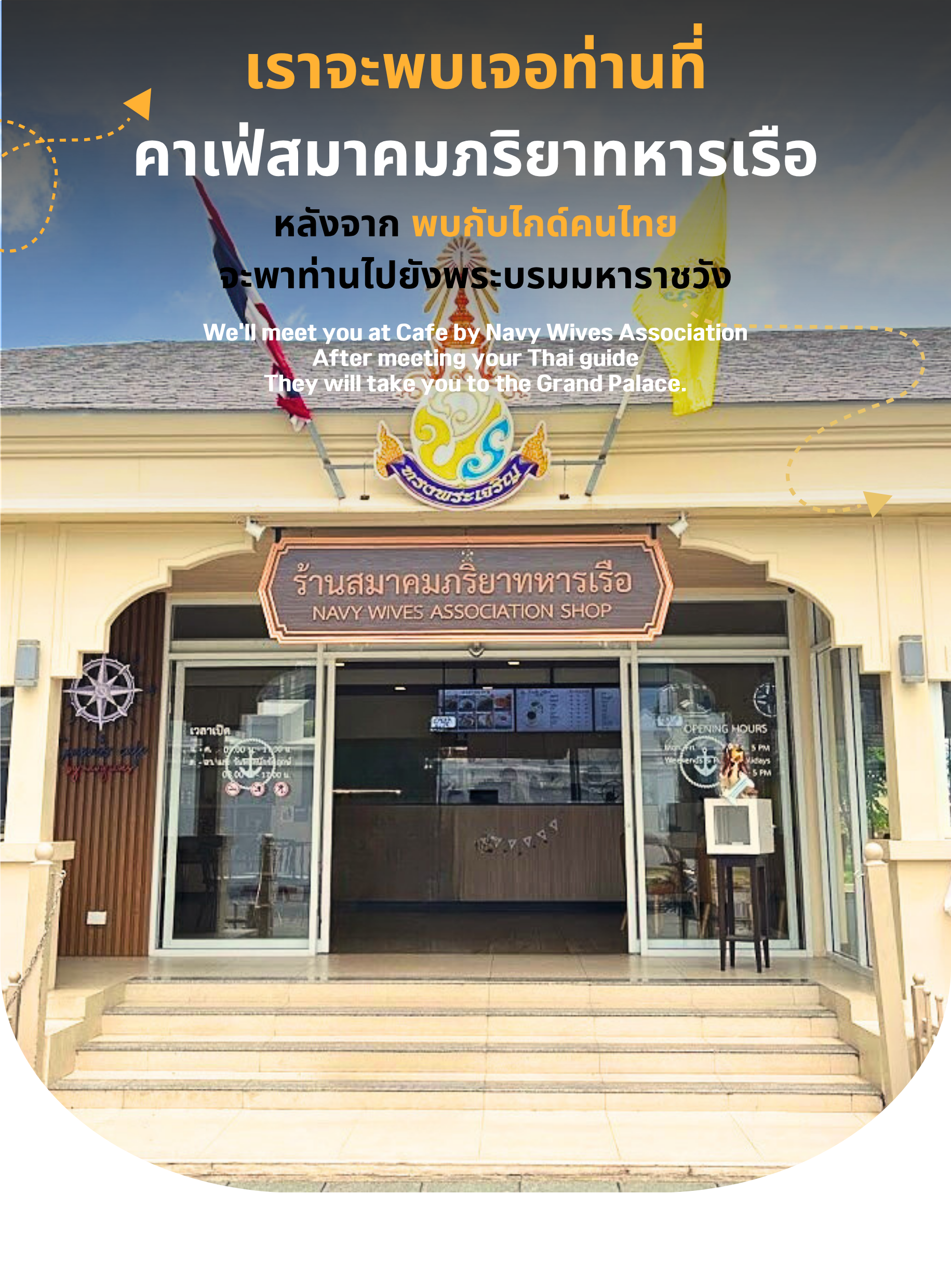 Meet your guide in front of Cafe' By Navy Wives Association (in front of ATM zone).