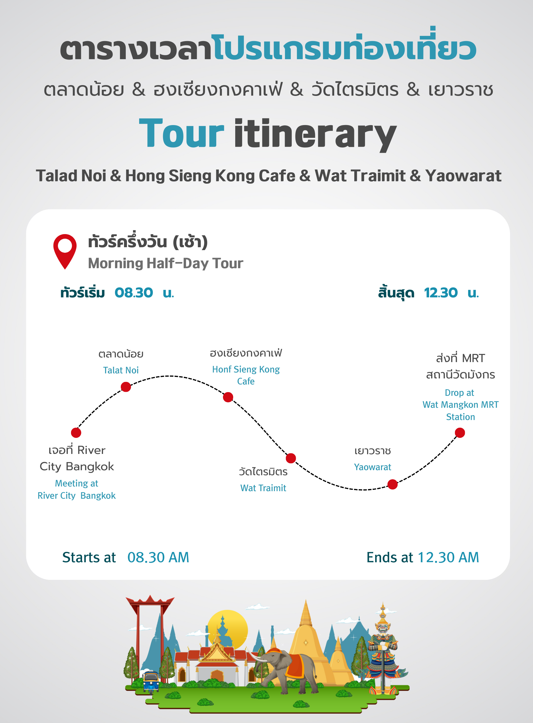 After finish visiting Yaowarat Street, the guide will kindly escort you to MRT Wat Mangkon Station where your tour program will conclude. Thank you for choosing our service, and we hope you had a wonderful experience!