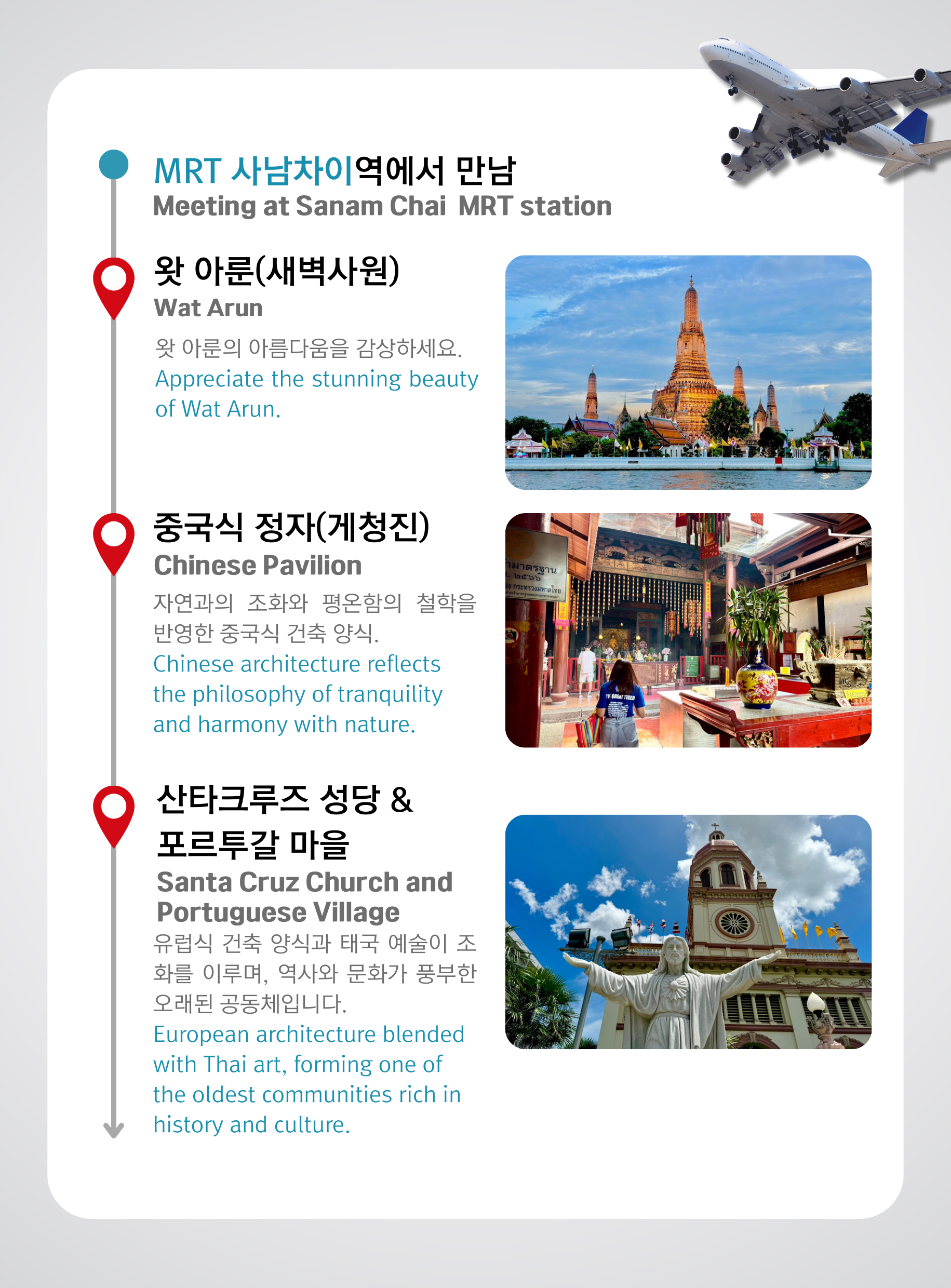 가이드가 MRT 사남차이 역에서 여러분을 만나러 갑니다.