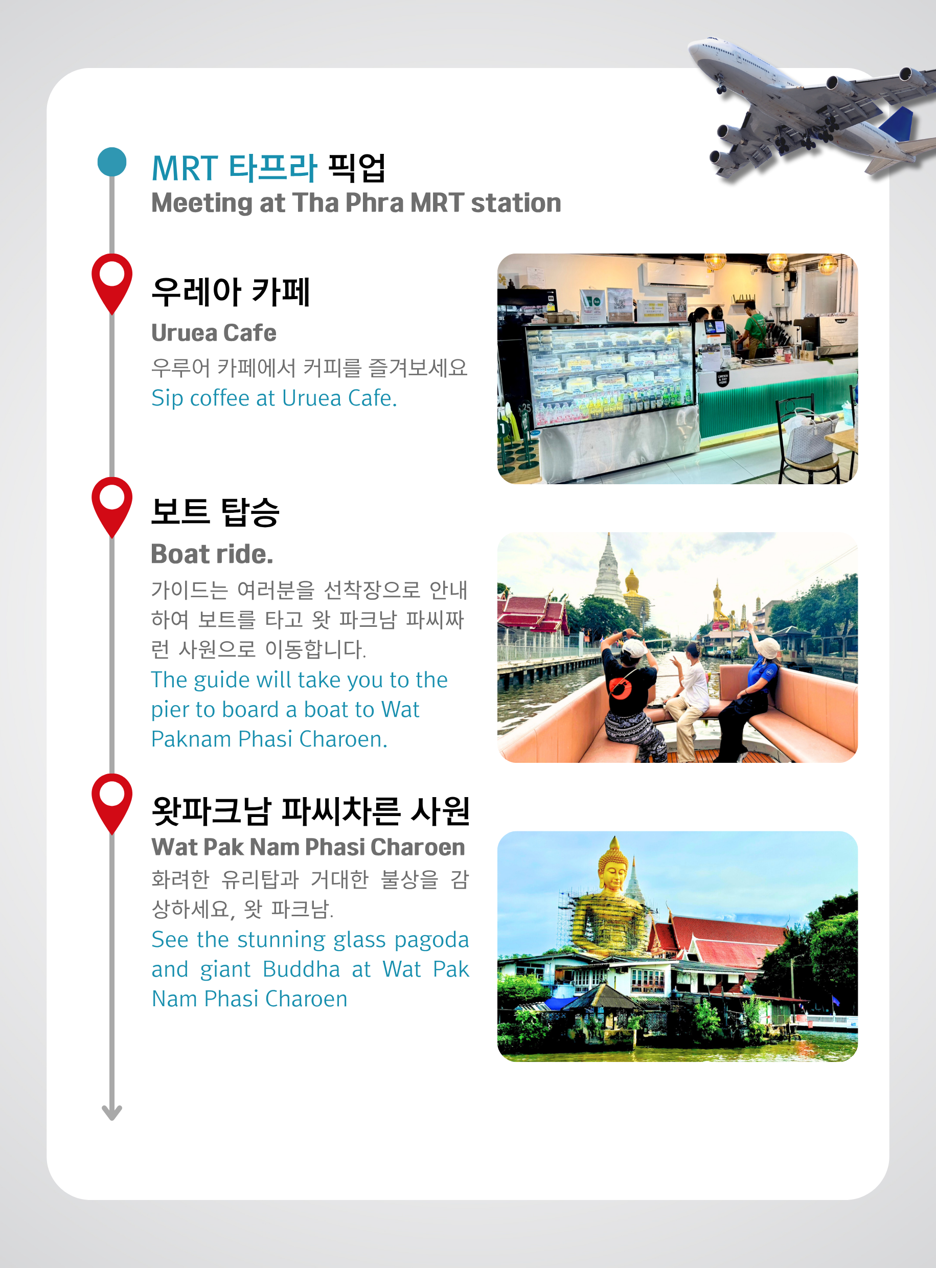 가이드가 Tha Phra MRT 역에서 여러분을 만나러 갑니다.