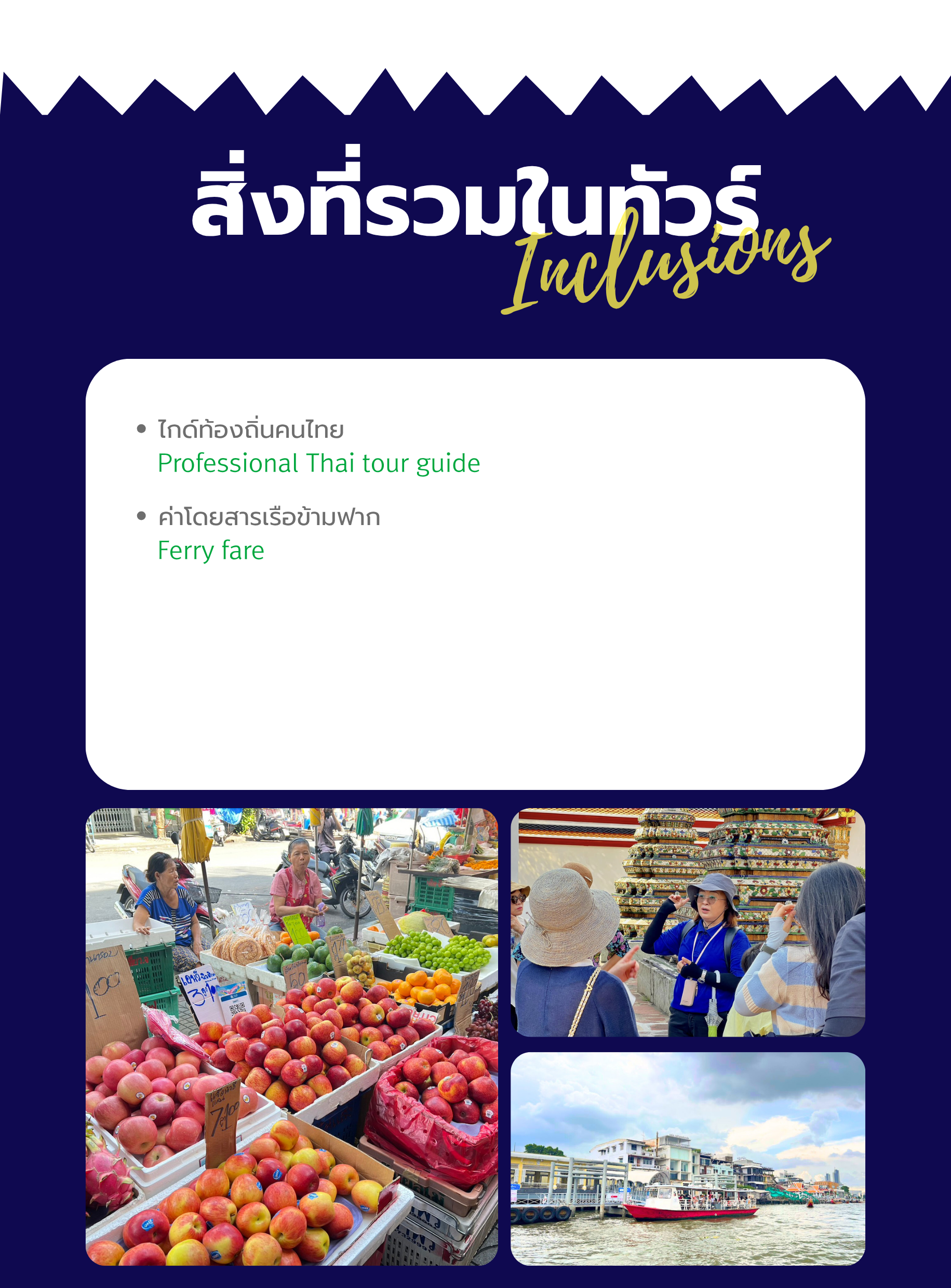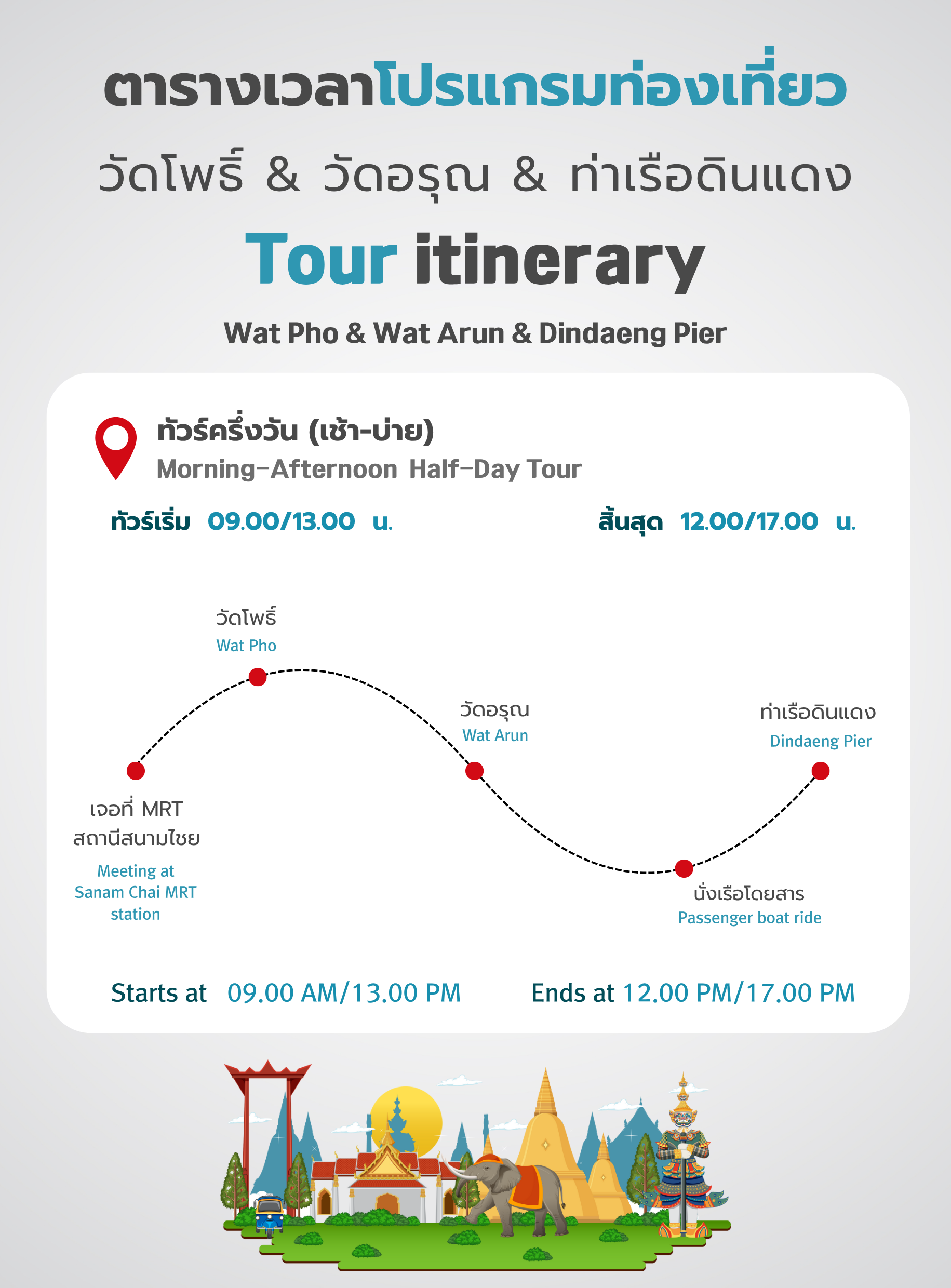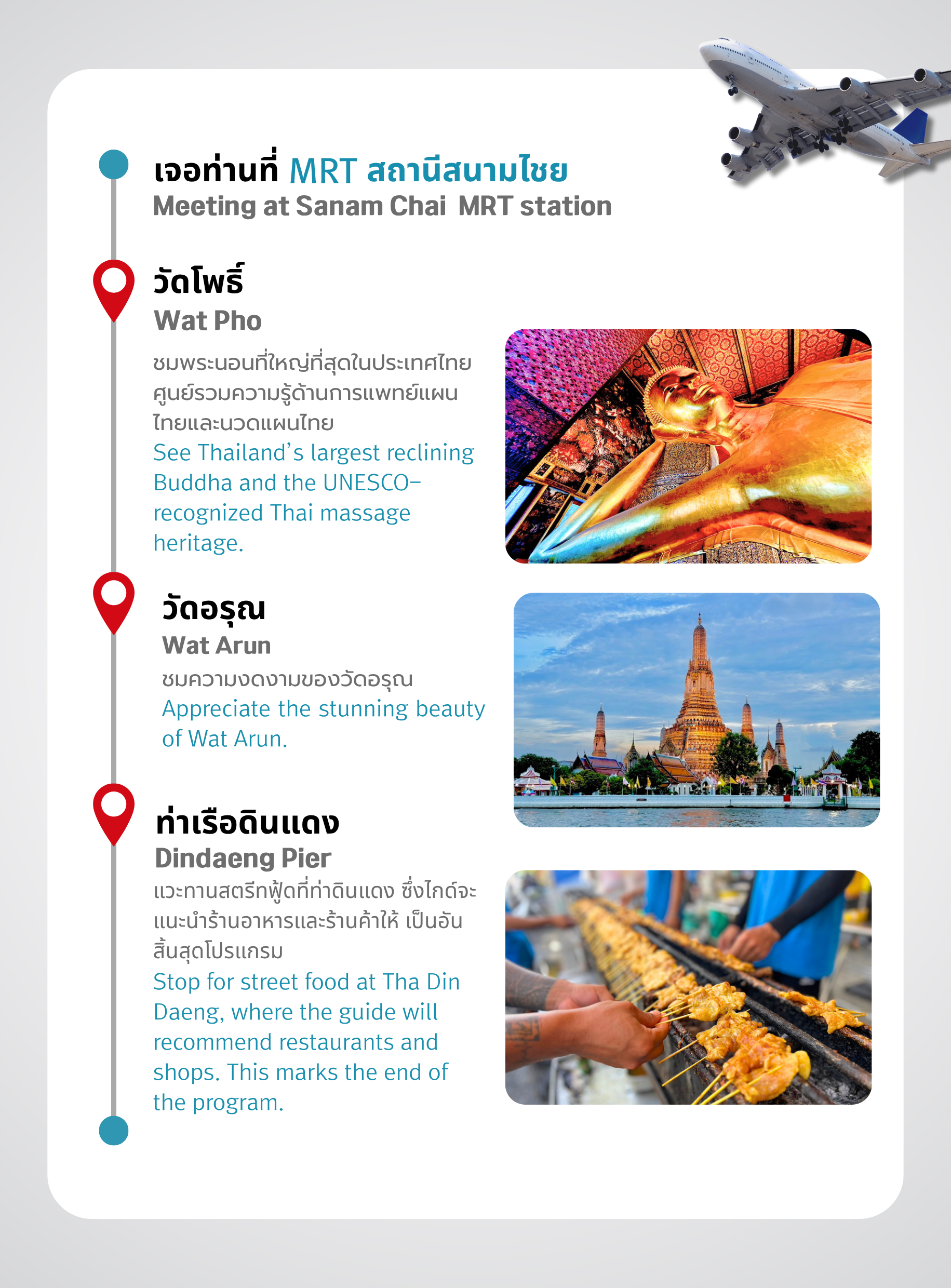 • Surcharge(not included): Wat Arun Entrance Fee: 200 THB, Wat Pho Entrance Fee: 300 THB