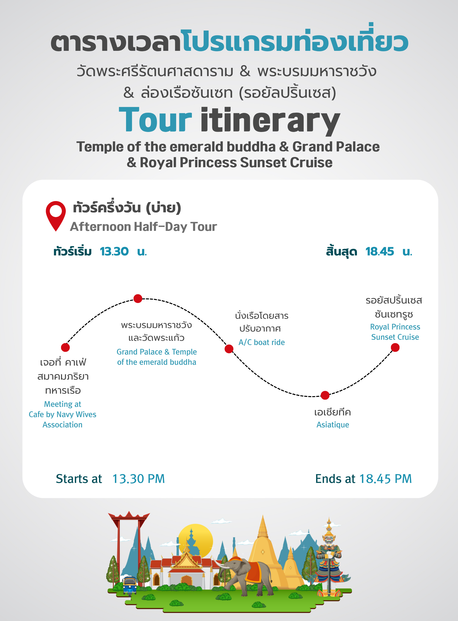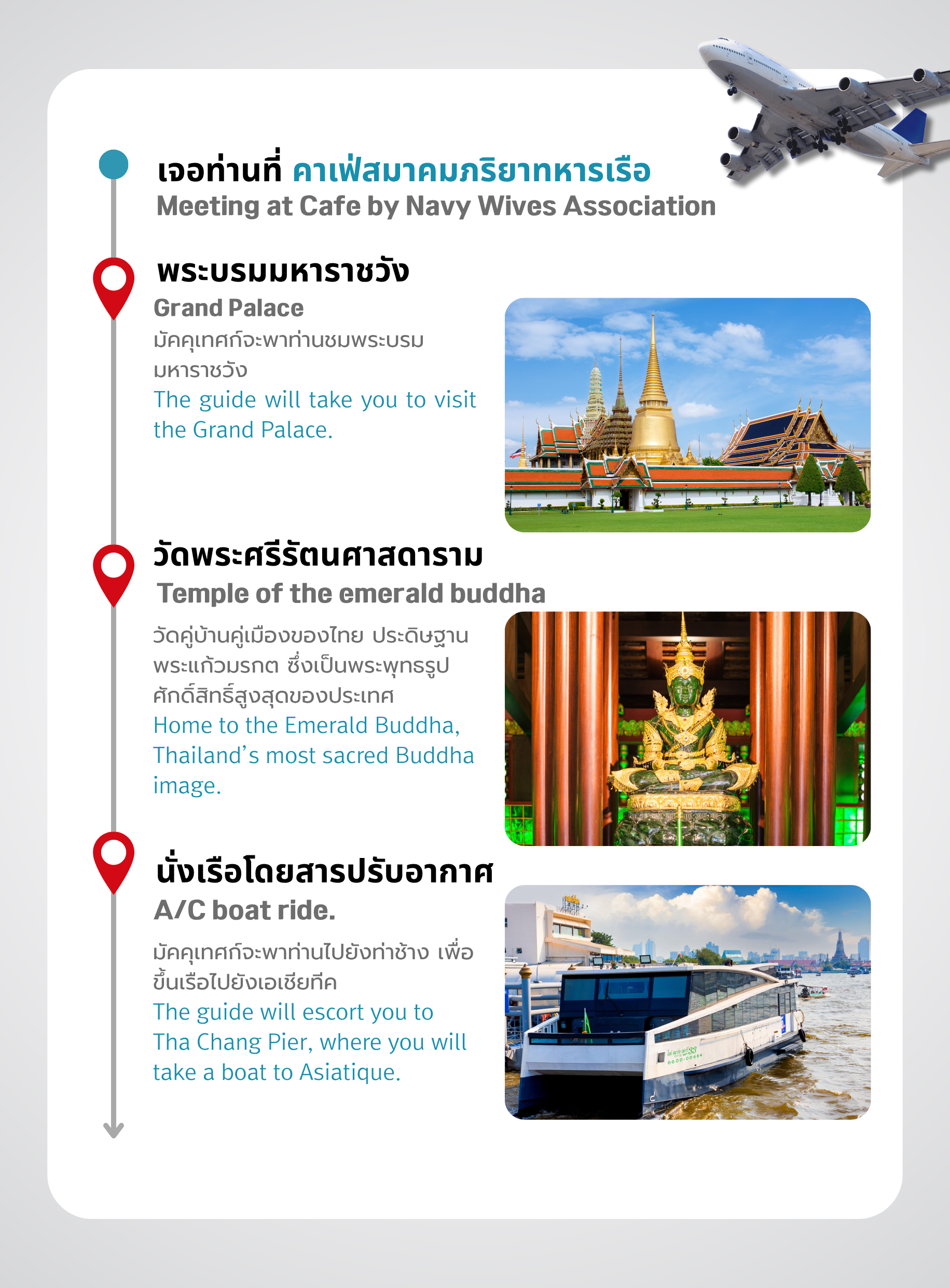 ไกด์จะพบคุณที่หน้าคาเฟ่ By Navy Wives Association (ตรงข้ามโซน ATM)