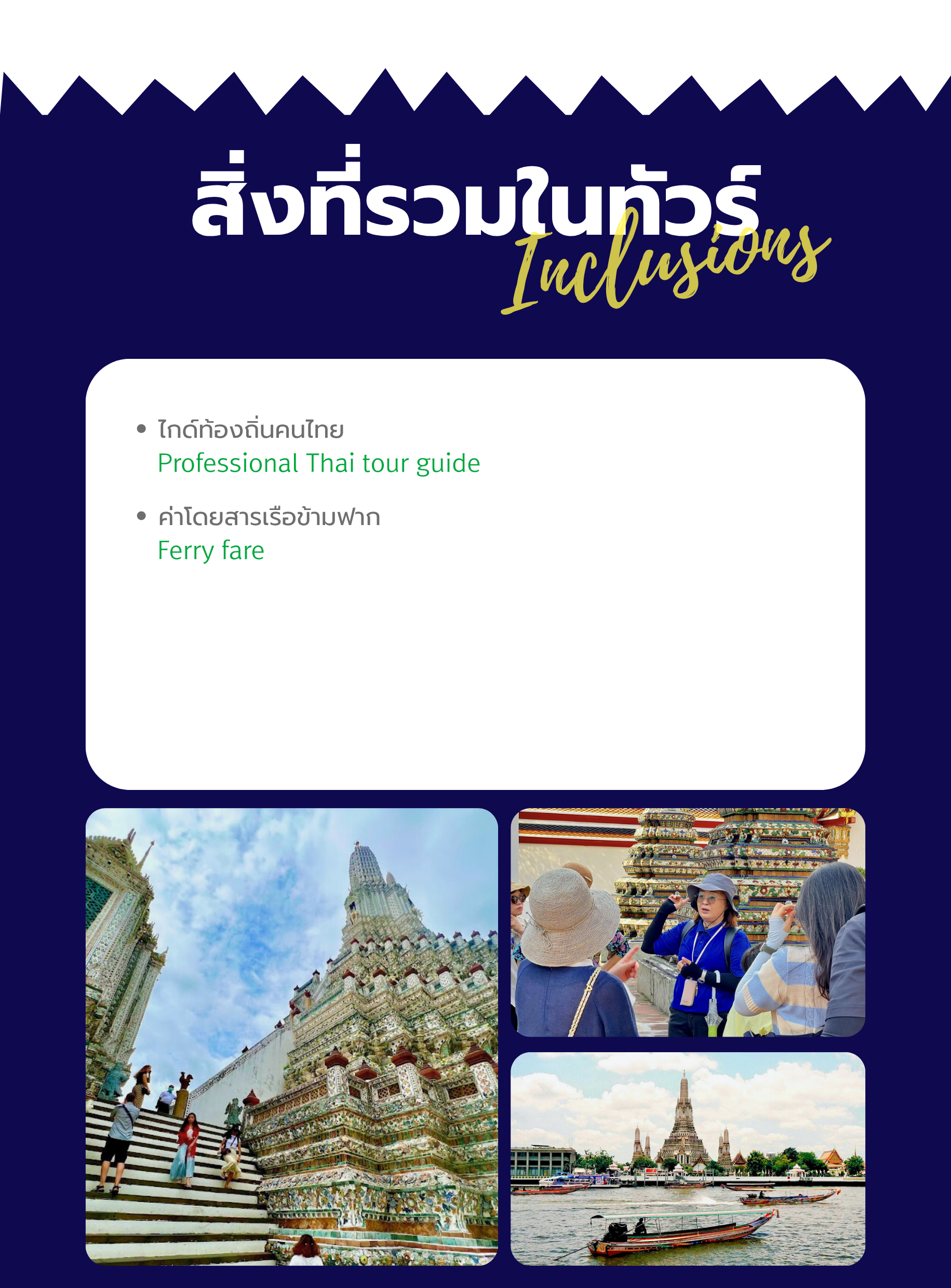 จากนั้นมัคคุเทศก์จะพาท่านไปยังวัดอรุณราชวนาราม