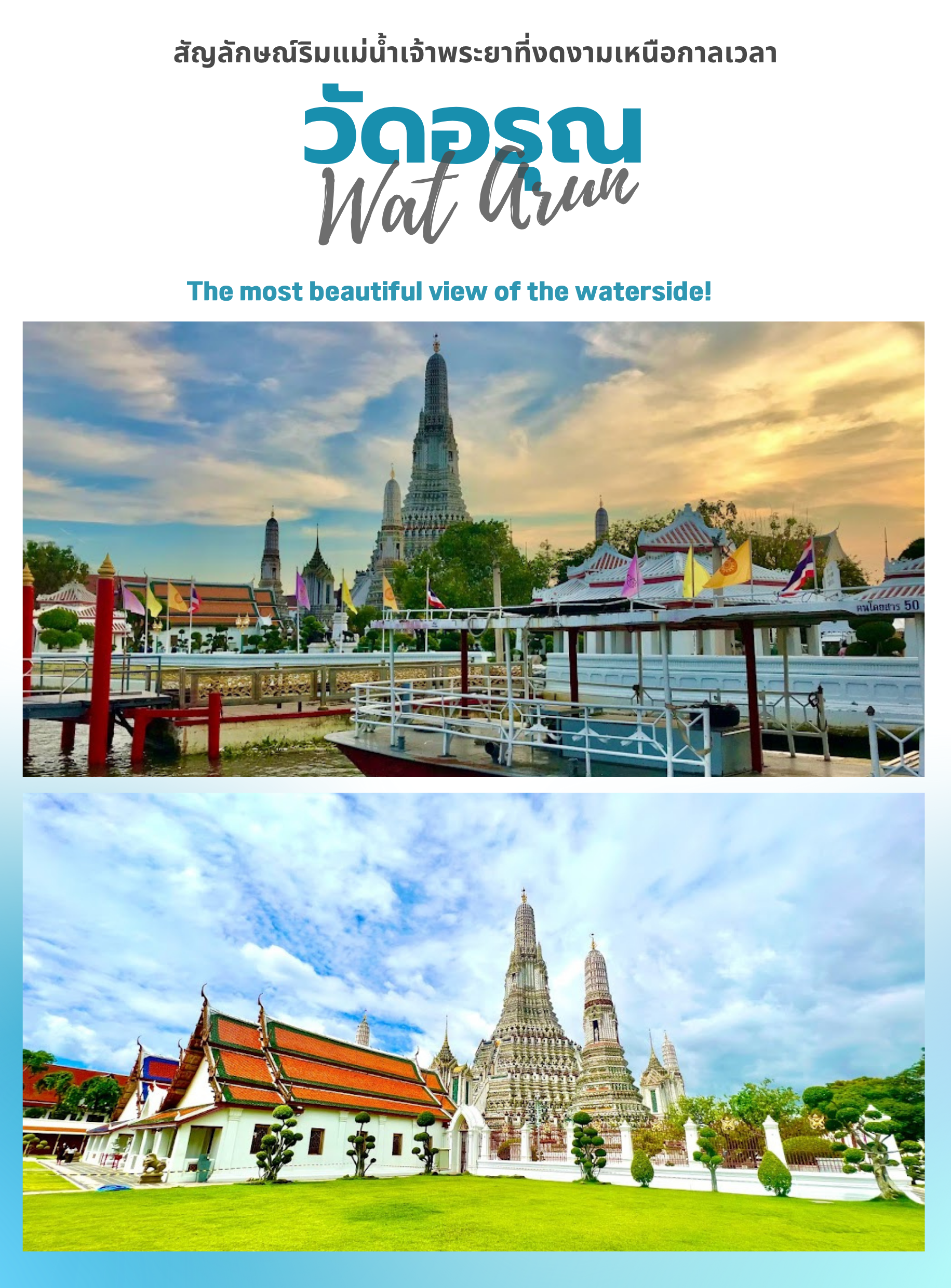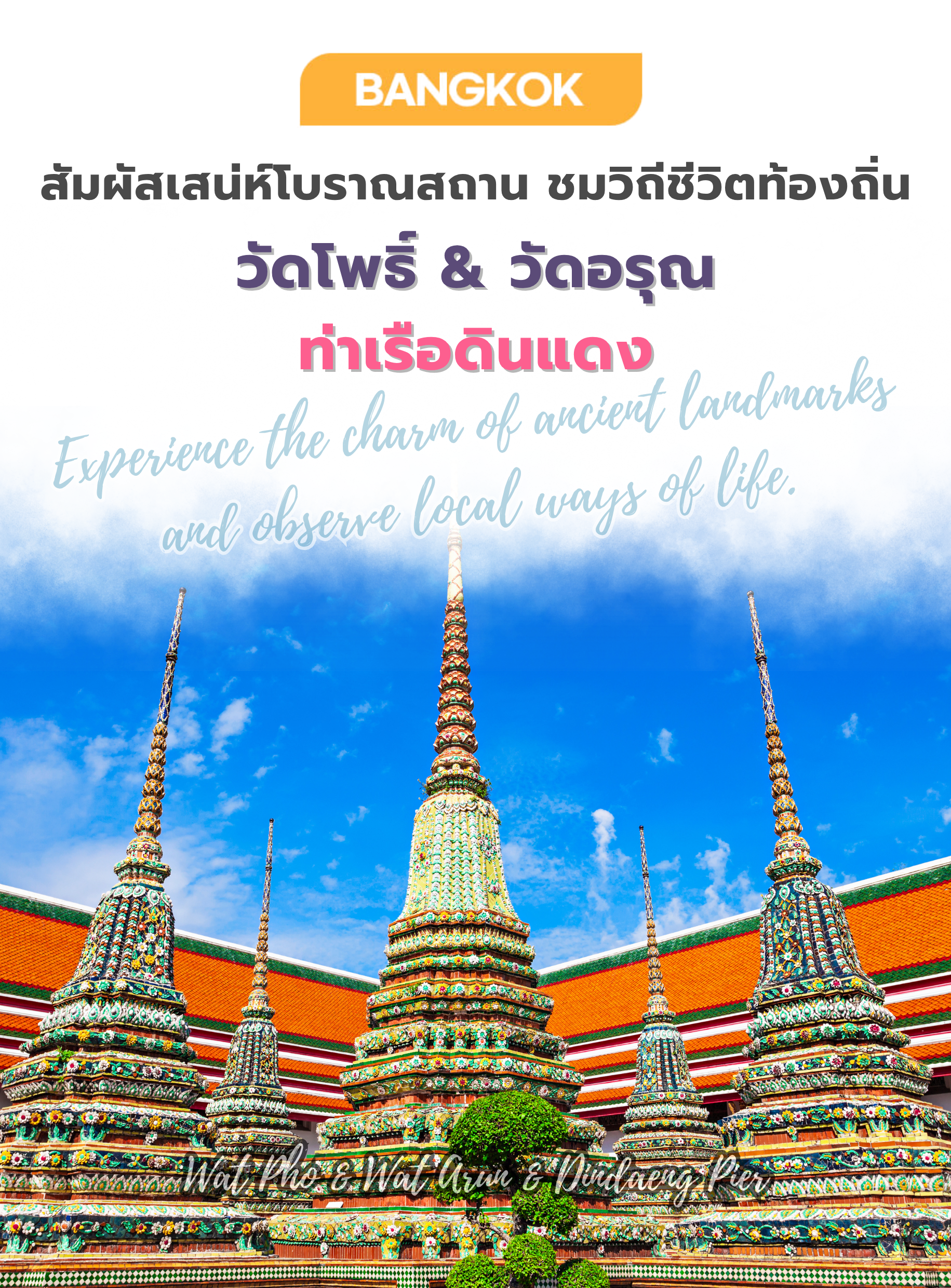 • ค่าธรรมเนียมเพิ่มเติม (ไม่รวม): ค่าเข้าชมวัดอรุณชาวต่างชาติ 200 บาท / ค่าเข้าชมวัดโพธิ์ชาวต่างชาติ 300 บาท / คนไทยเข้าฟรี