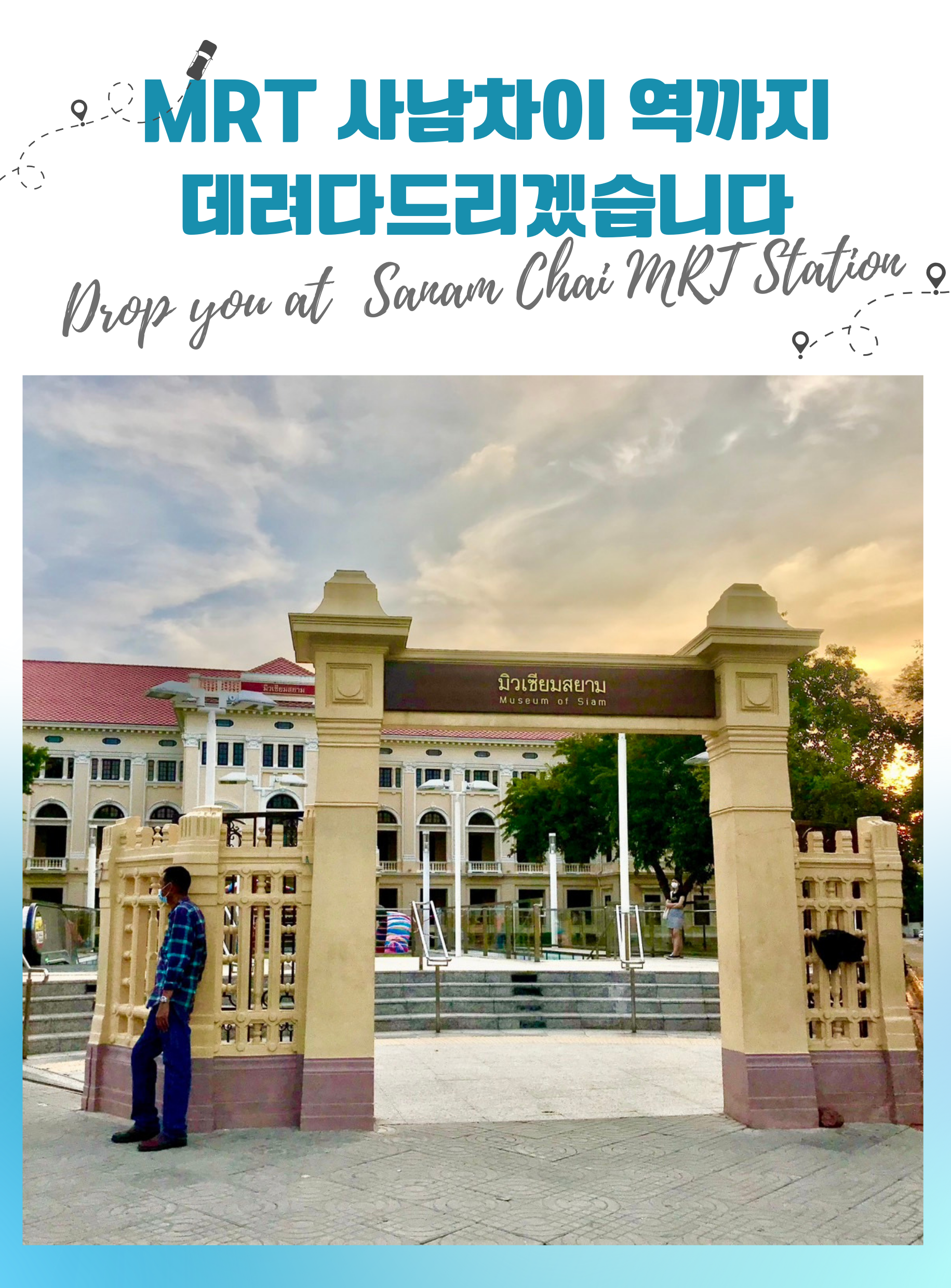 가이드가 MRT 사남차이 역에서 여러분을 만나러 갑니다.