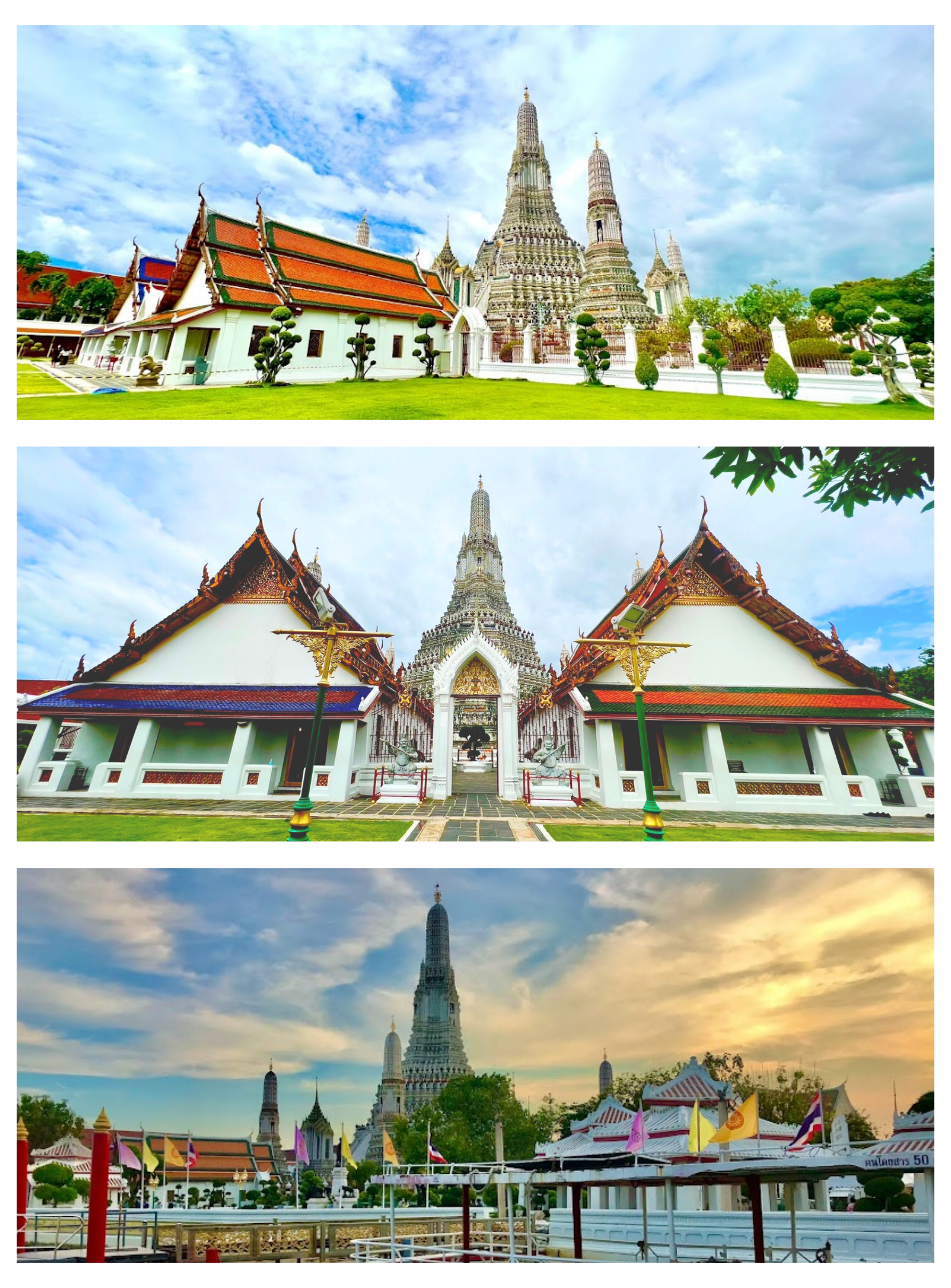왓 아룬(Wat Arun) 또는 새벽 사원은 방콕 톤부리 지역의 차오프라야 강변에 위치해 있습니다. 이 사원은 아름다운 중앙 탑으로 유명하며 방콕의 상징적인 랜드마크 중 하나입니다. 원래 아유타야 왕조 시대에 건립되었으나, 라마 2세와 3세 시대에 걸쳐 크게 복원되었습니다. 사원은 다양한 색상의 도자기로 장식되어 있어 방콕의 상징적인 명소 중 하나로 꼽힙니다.