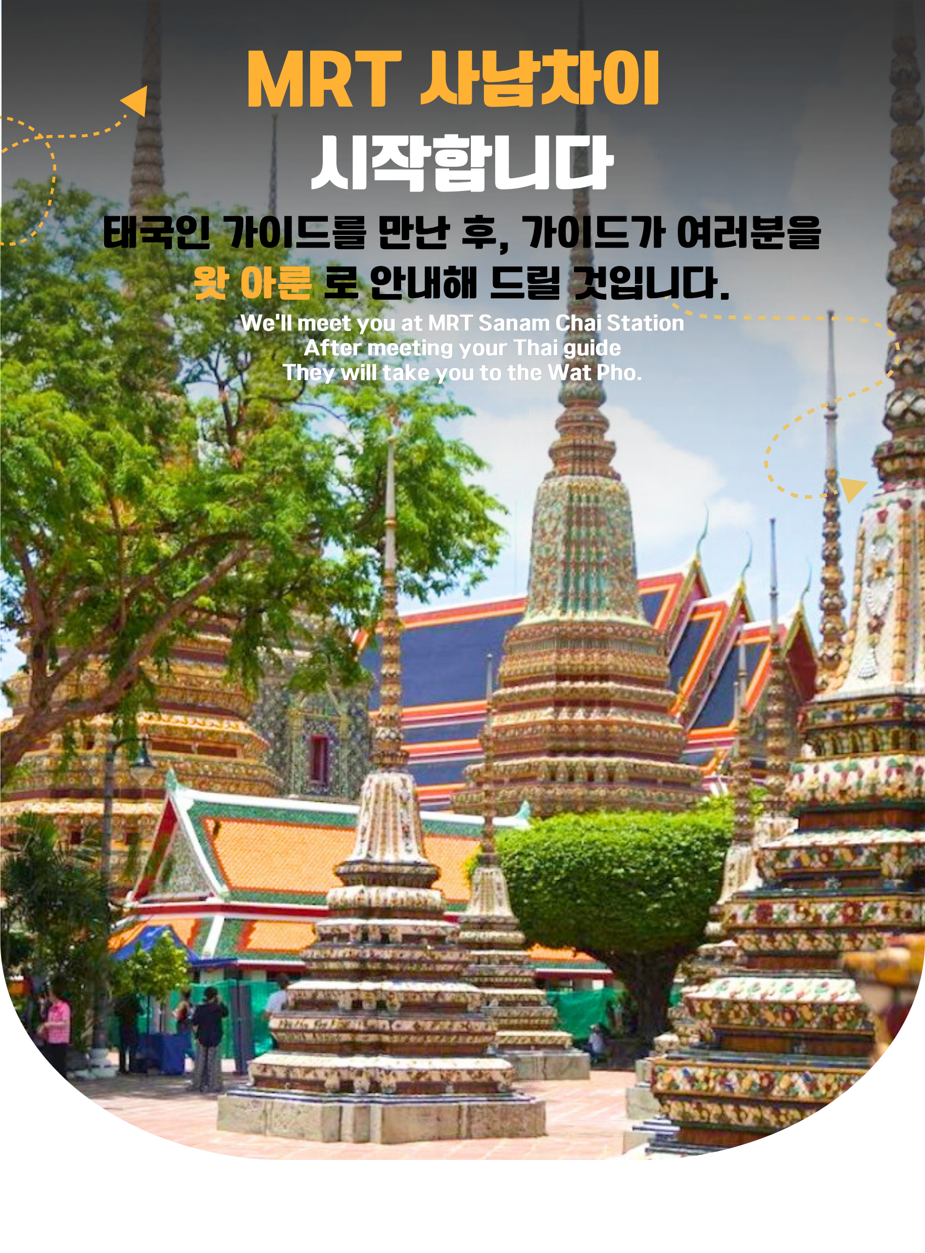 가이드가 MRT 사남차이 역에서 여러분을 만나러 갑니다.