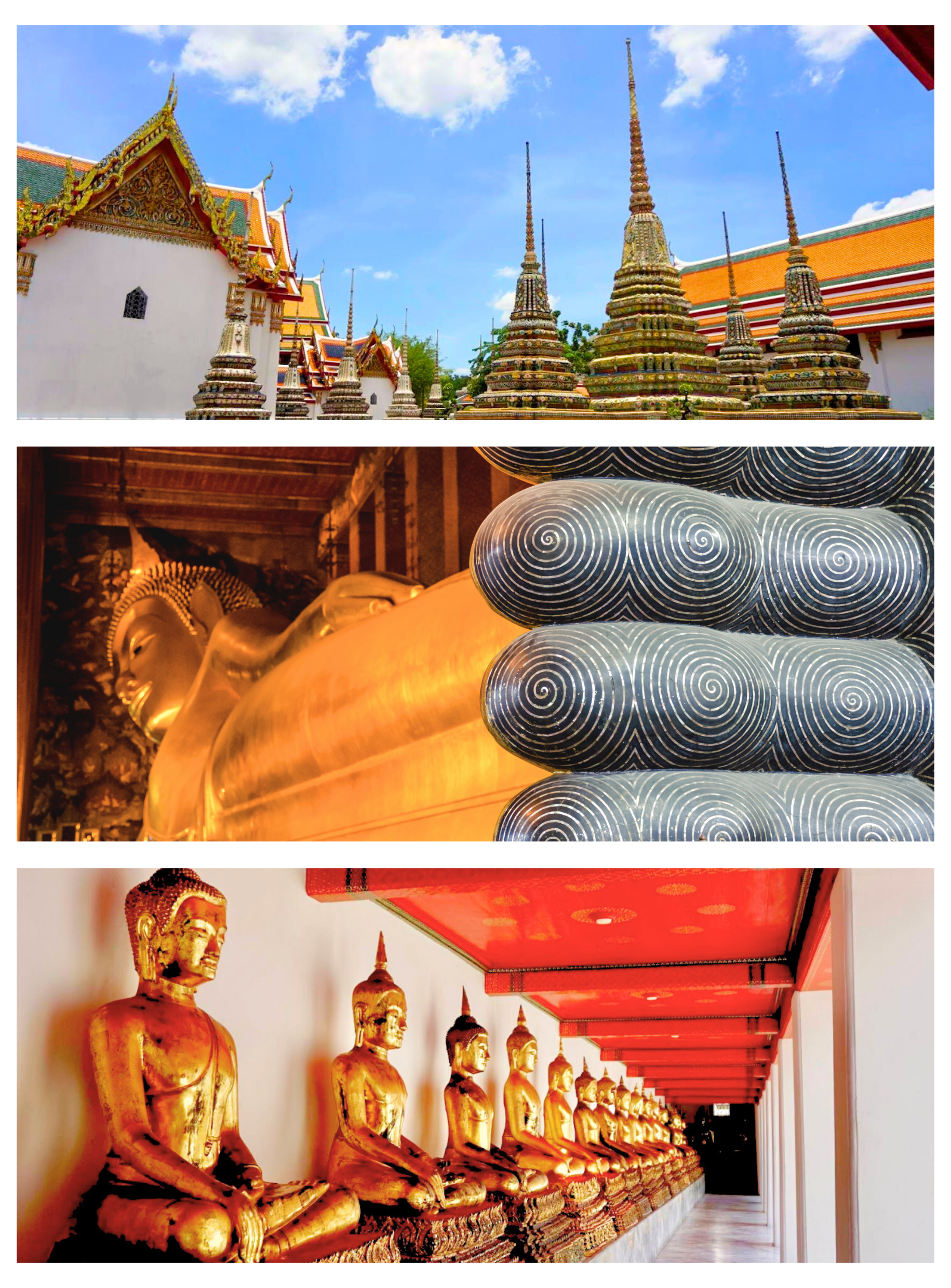 왓 포(Wat Pho) 또는 와불 사원은 방콕 프라 나콘 지역의 왓 프라깨우 근처에 위치해 있습니다. 이 사원은 큰 와불상으로 유명하며, 태국 전통 마사지의 시작점으로 알려져 있습니다. 사원은 아유타야 왕조 시대에 건립되었으나, 라마 1세와 3세 시대에 걸쳐 크게 확장 및 복원되었습니다.