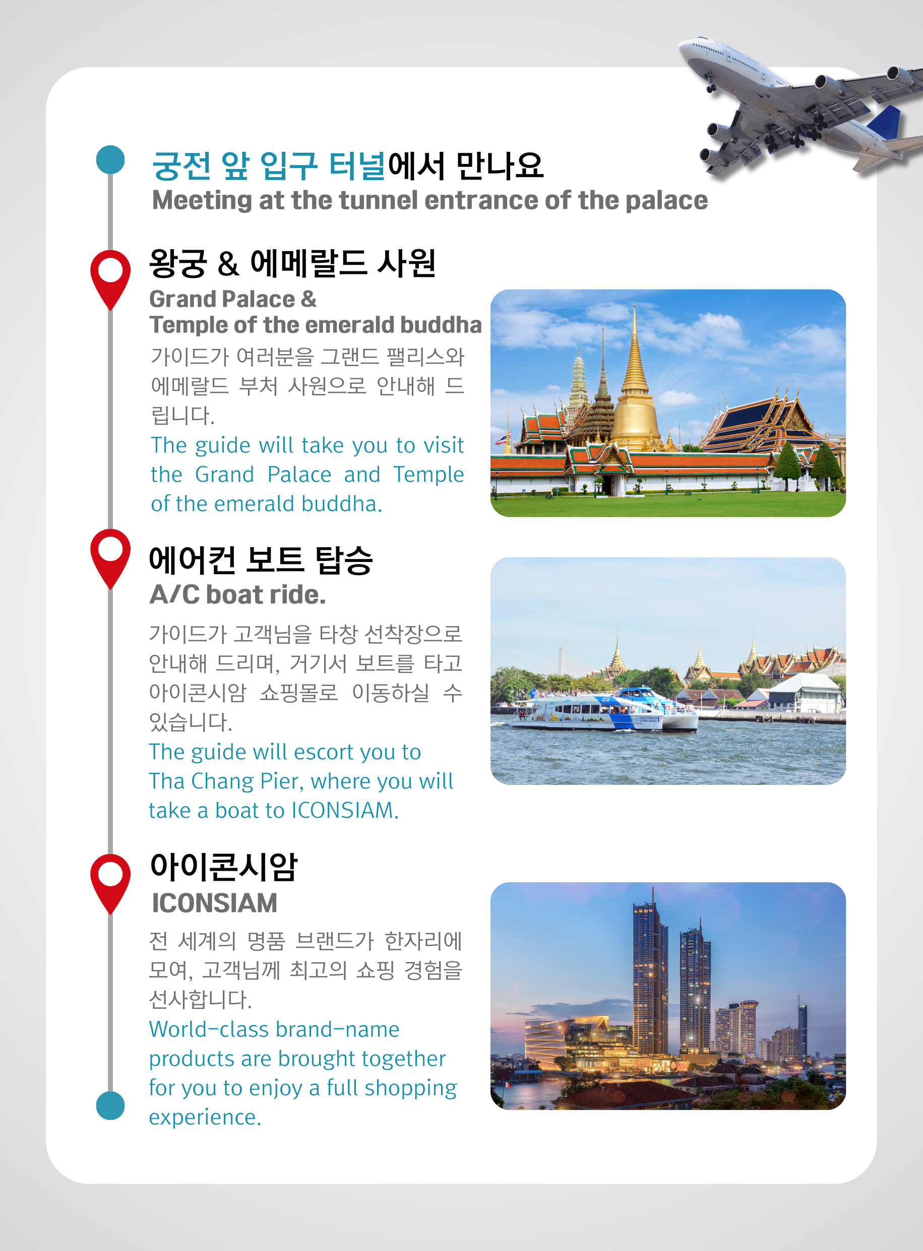 충분히 사진도 찍고 즐기신 후, 가이드는 아이콘 시암 선착장에서 여러분을 배웅하며 투어를 마무리합니다.