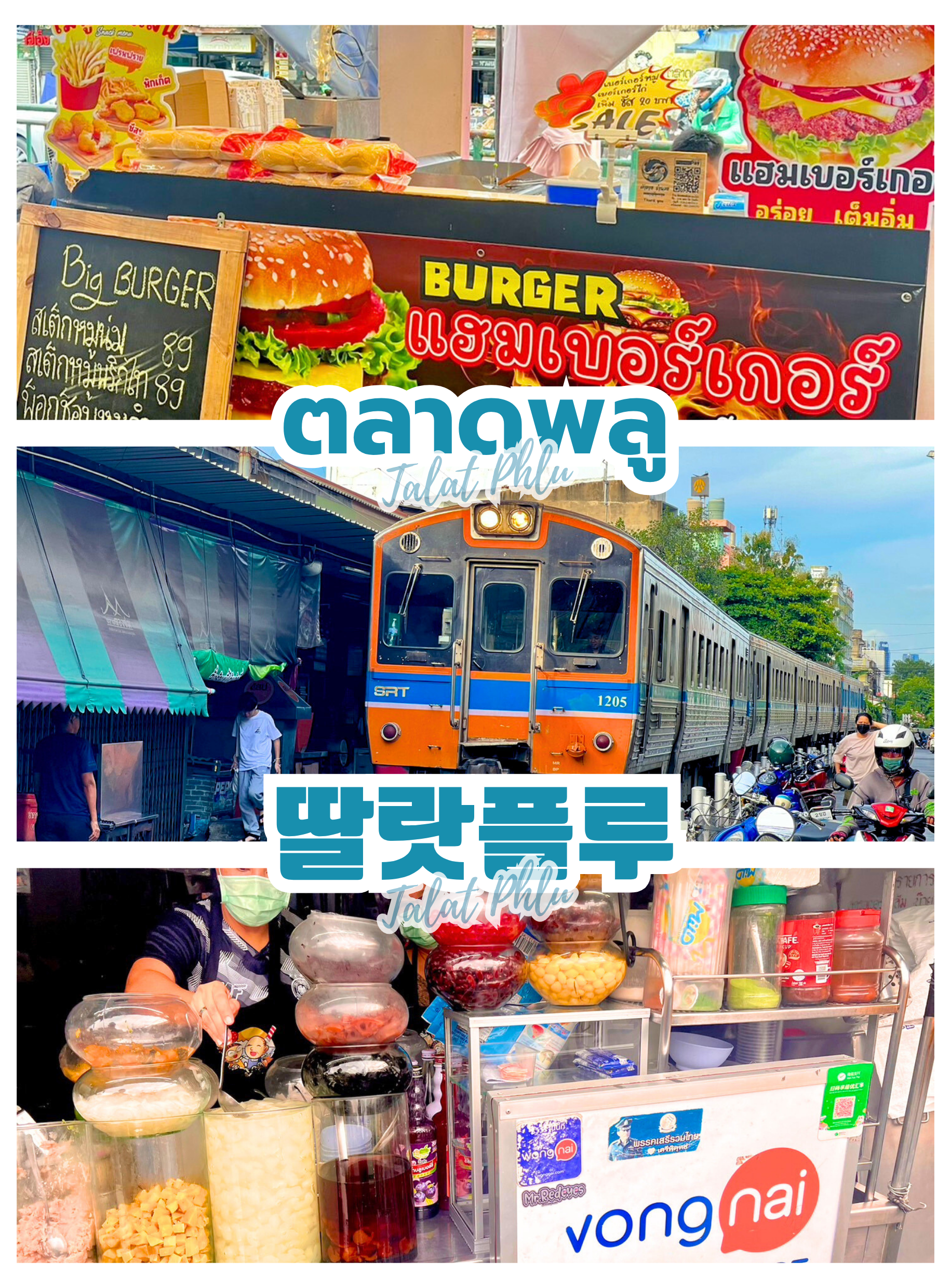 딸랏 플루(Talat Phlu) 는 방콕 톤부리 지역에 위치한 역사가 깊은 지역으로, 특히 태국과 중국 요리로 유명한 곳입니다. 이 지역은 태국-중국계 주민들의 문화적 중심지로, 오래된 전통적인 분위기를 그대로 유지하고 있습니다. 딸랏 플루는 거리 음식, 디저트 가게, 그리고 100년이 넘는 전통을 자랑하는 식당들로 잘 알려져 있습니다. 이곳의 대표적인 요리로는 푹 삶은 소고기 국수, 돼지고기 꼬치구이, 붉은 돼지고기 밥, 그리고 태국식 크리스피 팬케이크, 부추 만두와 같은 전통적인 디저트가 있습니다. 또한 딸랏 플루는 수상 교통과 철도 교통의 주요 연결 지점으로, 역사적으로도 중요한 의미를 지니고 있습니다.