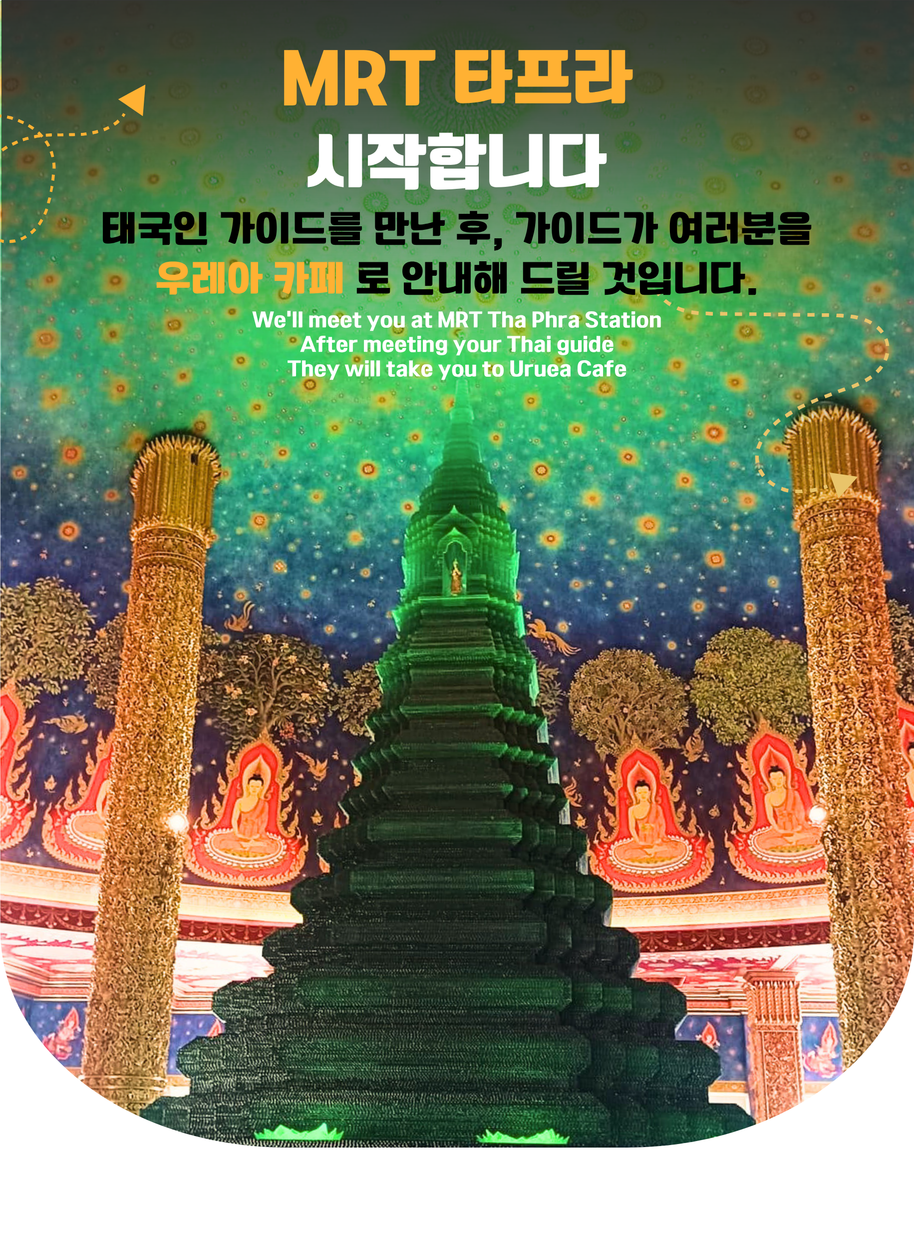 가이드가 Tha Phra MRT 역에서 여러분을 만나러 갑니다.