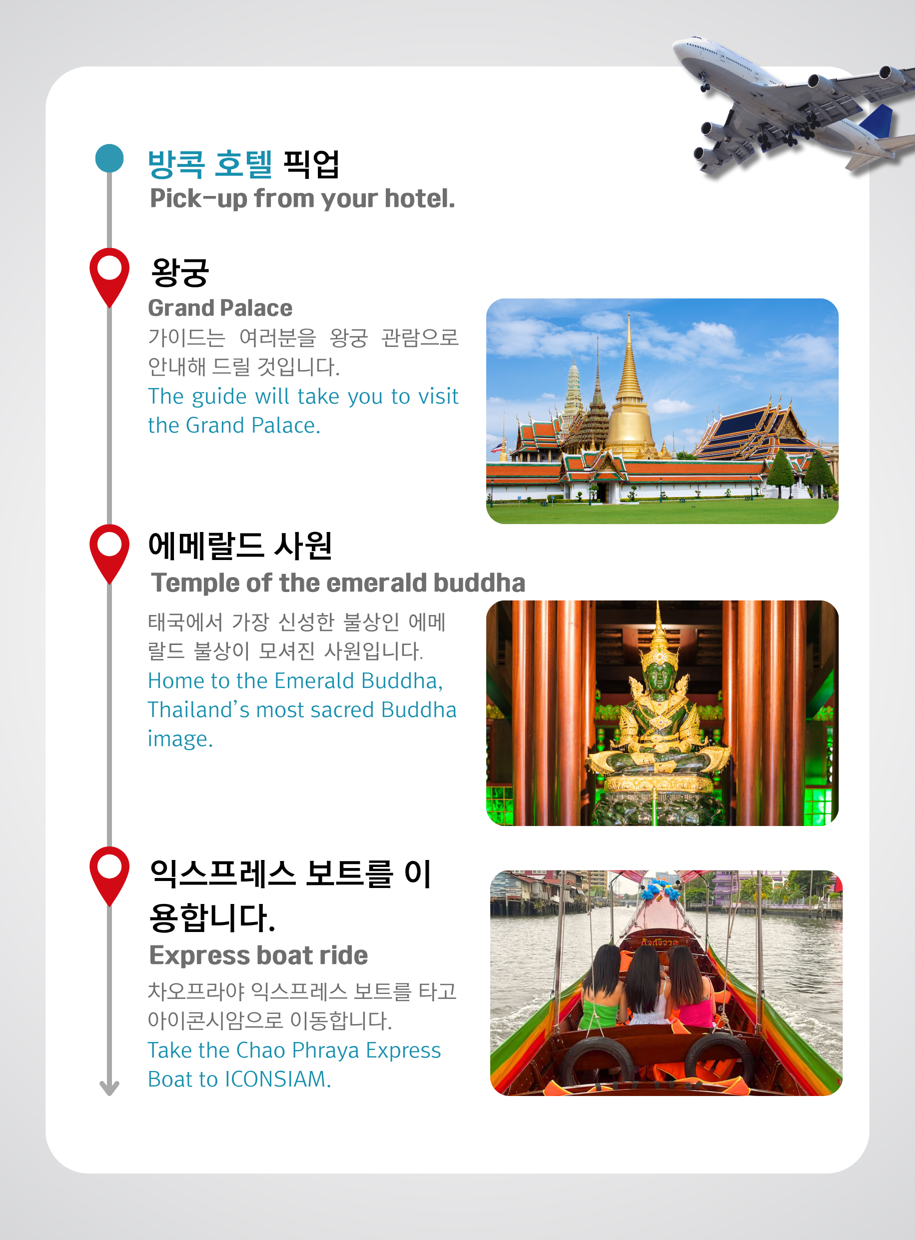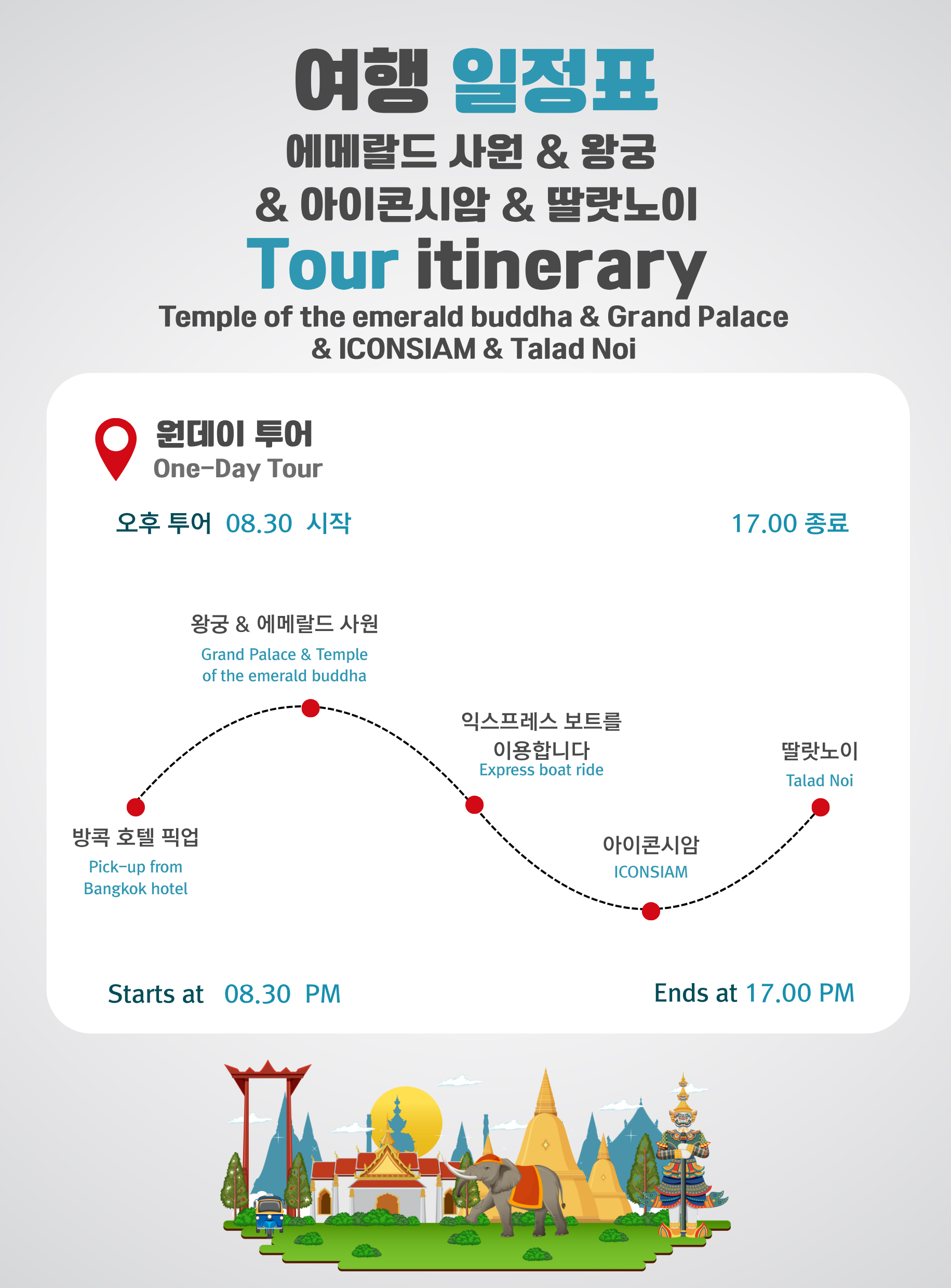 • 추가 요금(포함되지 않음): 그랜드 팰리스 입장료 500 THB